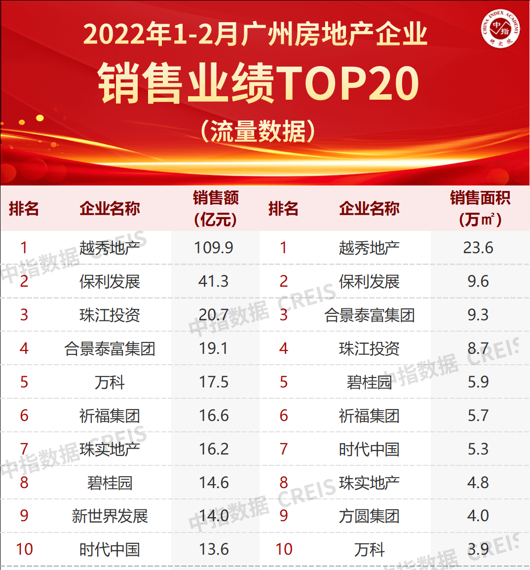 2月以来,广州房贷利率持续下降,同时银行放款速度也在加快。多方因素影响下,广州整体市场成交氛围开始活跃,开发商积极推货,购房者也加快入市的步伐。据中指院监测,从房企销售额来看,2022年1-2月广州有7家房企销售金额超过15亿元。