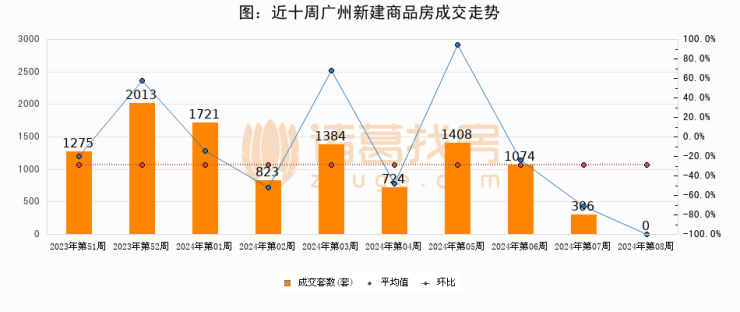 进入2024年第07周(02月12日-02月18日),广州新建商品房成交0套,较上周减少306套,环比下降100%