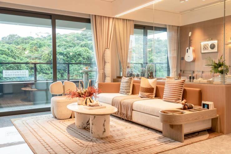 其次是户型设计方正合理,动静分区,客厅里肆意追剧,厨房里热火朝天,卧室里安静休息,全家人各有天地,互不打扰。客餐厅一体化设计,加上约6.5m宽幕观景阳台,面朝山景,公共空间尺度奢阔。