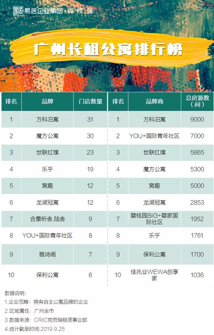 广州集中式长租公寓榜单发布!