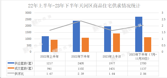 克而瑞数据监测显示,近两年天河供应8299套商品住宅,供求比为1.93,供求比位居全市第二,天河楼市终于迎来了新盘供应的富裕仗。