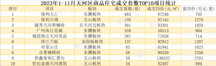 最后,让我们来看看今年1-11月天河哪些项目卖得最好: