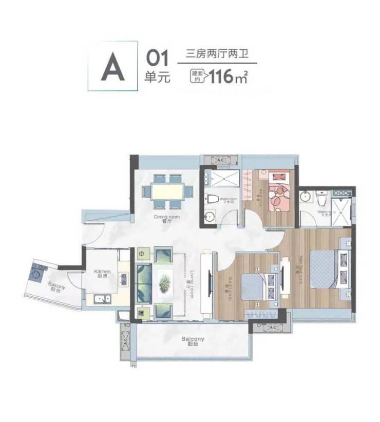 二、建面约81至116㎡精妆二至三房