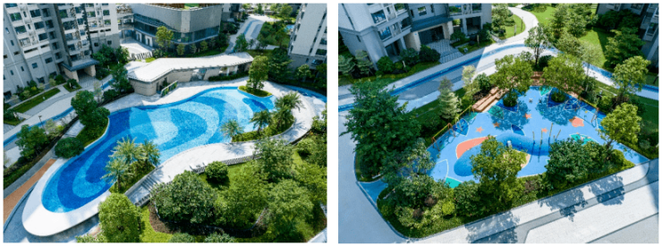 在嘉云汇·云廷,园林内部打造了约8.5万㎡四季园林,乔木、灌木、花草等交替出现,层层叠叠的绿意,处处透露着一股静谧、惬意之感。