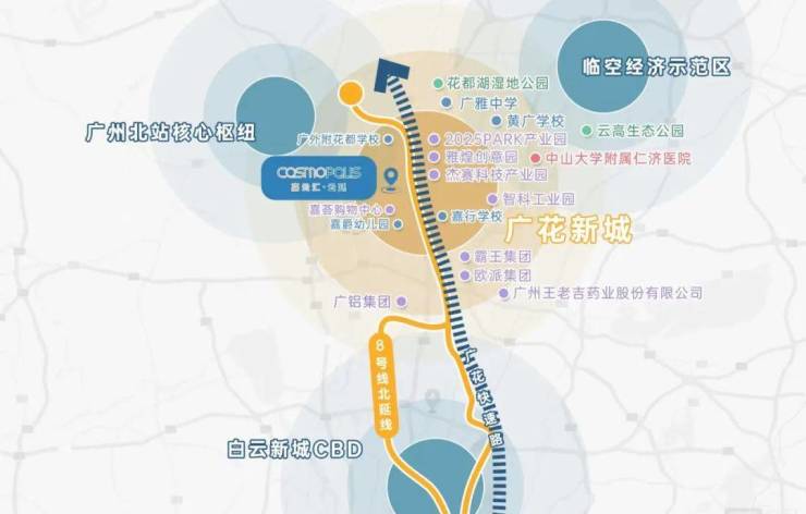 从区位上来看,“广花新城”西接广州北站、东临空港经济区,南望白云新城。是一个集交通、产业、配套、居住等于一体的“金三角辐射区”。
