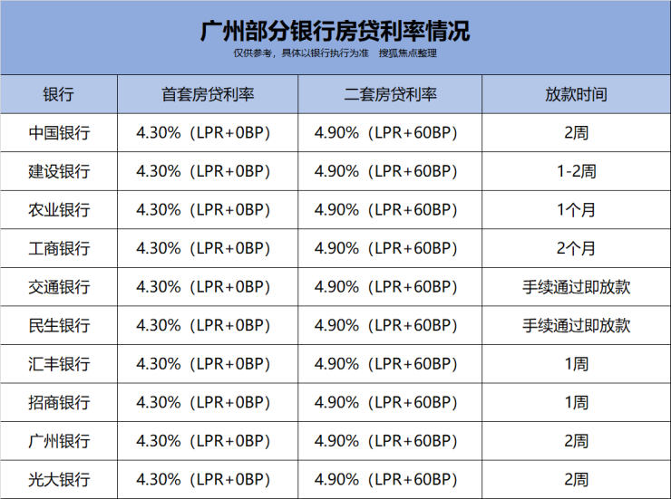 纵观目前广州各大行房贷利率情况,整体以首套4.30%(LPR+0BP),二套4.90%(LPR+60BP)为主流。