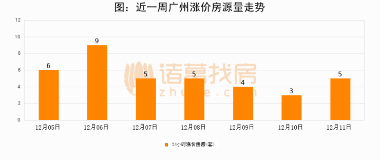 根据诸葛找房数据显示,广州24小时涨价房源量为5套,较12月10日增加2套,环比上涨66.7%。与此同时,涨价房源占比小幅扩大,业主信心有所提升。