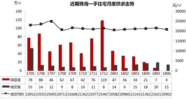 成交方面,2018年6月,珠海商品住宅成交15万㎡,环比减少25%,同比增加7%;成交较上月有所减少,但按照现时的进度,若加上6月余下天数的成交量,很大可能成交量会呈上扬趋势。