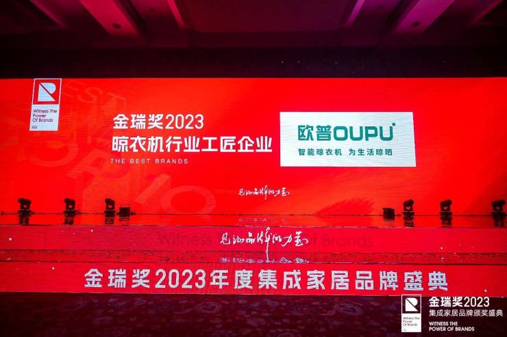 在金瑞奖2023年度品牌盛典上,欧普OUPU荣获中国晾晒品牌之声“2023 年度晾衣机行业工匠企业”。