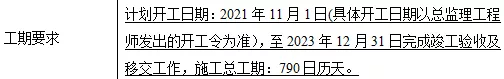 招标文件透露,施工总工期790日历天,计划开工日期为2021年11月1日(具体开工日期以总监理工程师发出的开工令为准),至2023年12月31日完成竣工验收及移交工作。