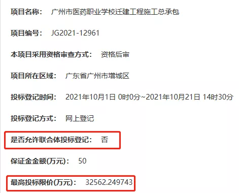 ·广州市医药职业学校迁建工程施工总承包本次施工总承包公开招标不接受联合体报名,建筑面积约 61214.60 平方米,较高投标限价约为3.26亿元。