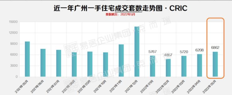 据克而瑞数据统计,5月份,广州一手住宅共成交6862套,环比增长10.53%,同比减少28.87%。