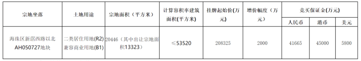 新滘西路以北AH050727地块占地面积20446㎡,地块总起拍价208325万,折合起拍楼面地价约38924元/㎡(未扣除配建)。