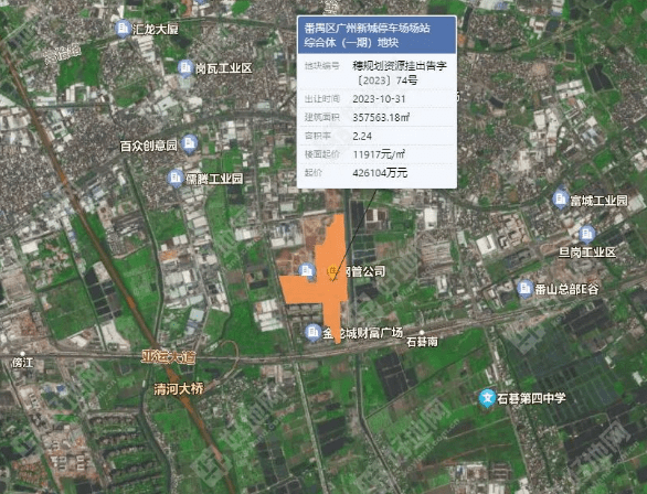 该地块建筑面积357563.18㎡,容积率2.24,起价426104万元,楼面起价11917元/㎡。