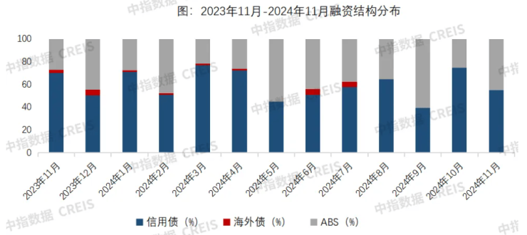 房企11月的债券融资规模呈现同比和环比双增长。