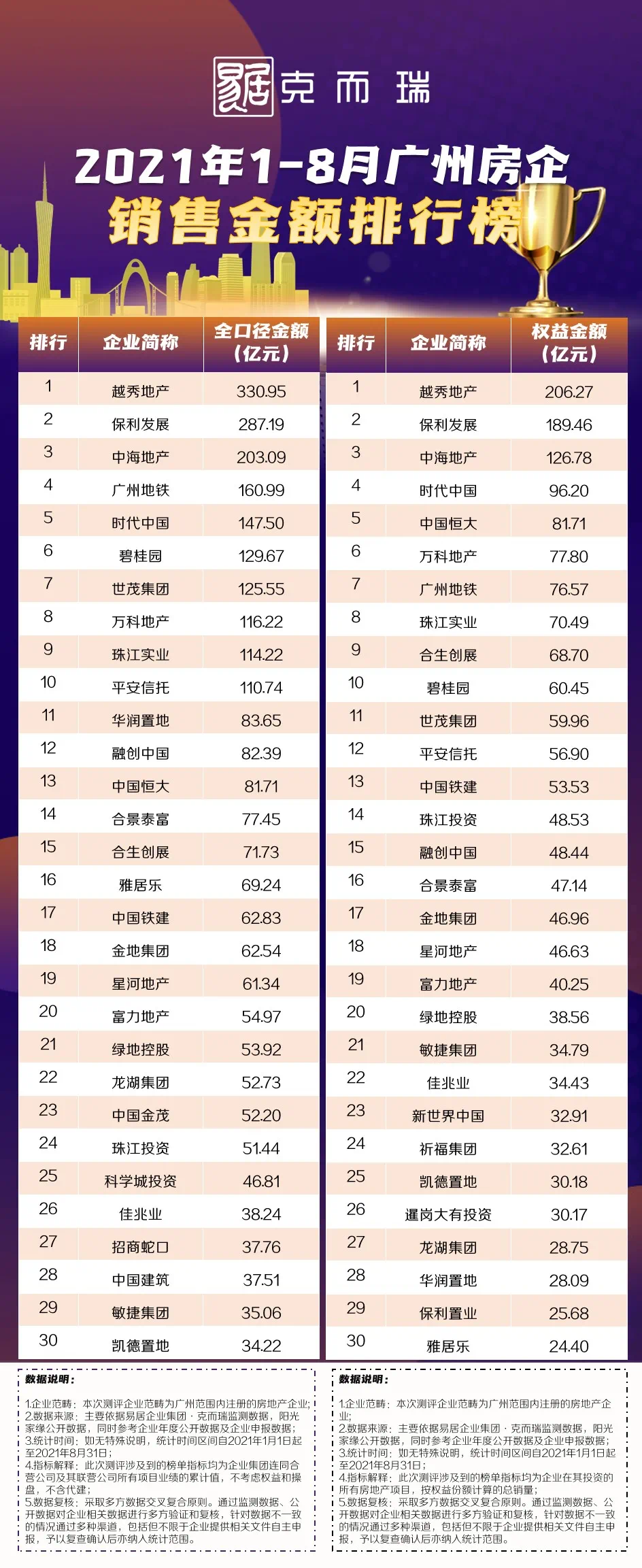 8月又双叒叕降了!2021年1-8月广州房企销售榜特别发布