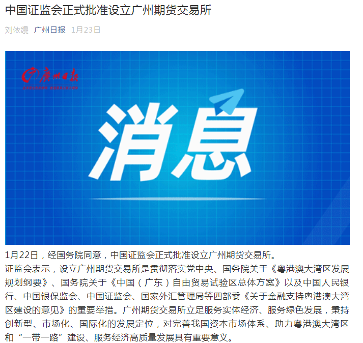 ▲1月22日广州期货交易所正式获批