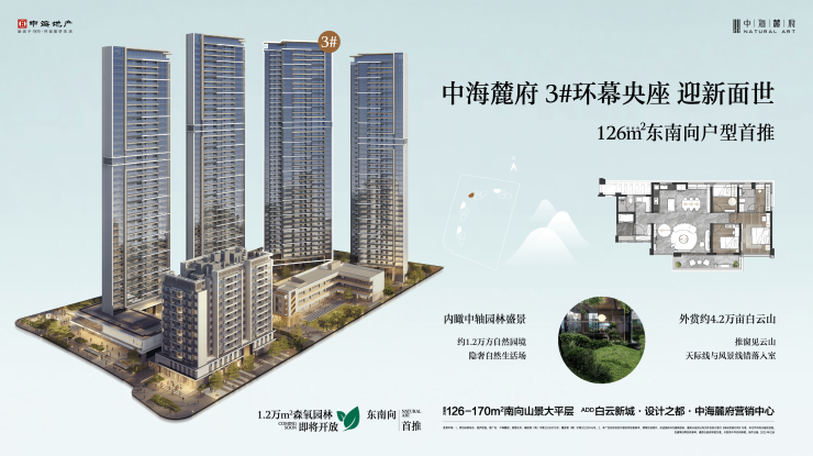 本周五,中海麓府应势加推126㎡全新户型,消息一经放出,即刻让市场为之沸腾,据悉,本次加推,是中海麓府首次推出东南朝向126㎡3+1空间产品,更是位于3#的楼王单位,扇形视野,无限楼间距,俯瞰中庭最佳景观,对望白云山视野,小户型亦可享一线云山盛色与城、园双景。