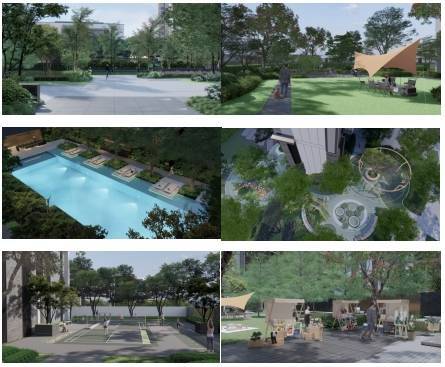 约1.2万方森氧园林即将开放,取法安曼酒店,打造隐奢自然生活场,景观整体采用“低饱和”风格廊道温和的情境和清新的自然,结合静谧空间,将人与城市密集的身体感知切断进入林中花园的秘境之中,120米景观主轴串联林下私宴厅、中央露天泳池、阳光大草坪、儿童乐园、海宝农场等景观节点,每栋楼下都有主题架空层,满足休闲娱乐多重需求。