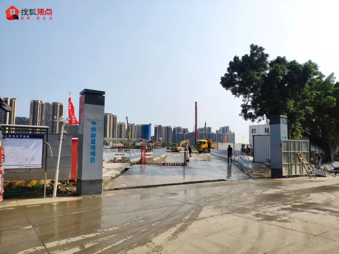 穿过越秀地产项目后,一路直走即可到达由山东鲁能打造的中绿蔚蓝湾项目。据现场一位工作人员透露,项目于今年2月正式动工,预计在2023年3月竣工,售楼部建成时间待定,产品售价预计也会在4万元/㎡左右。