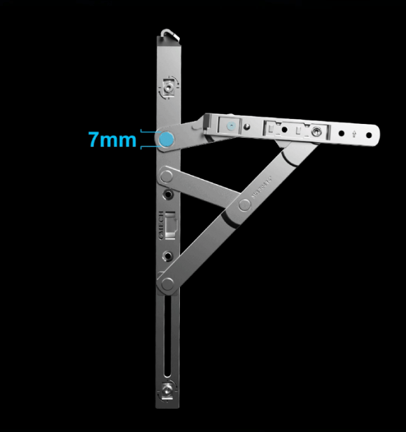 铰链运动杆自带塑胶件,能够打造低噪音的启闭体验,让门窗开关更舒适。
