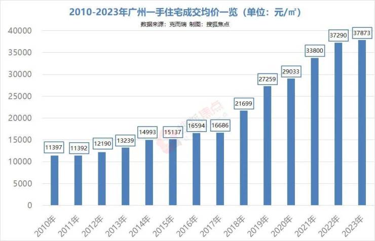 近日,搜狐君梳理数据发现,2010年至2023年间,广州房价已从11397元/㎡上涨至37873元/㎡,涨幅达232.31%。