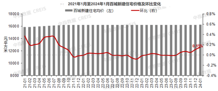 1月份,全国百城新建住宅平均价格为16244元/平方米,环比上涨0.15%,涨幅较2023年12月扩大0.05个百分点。