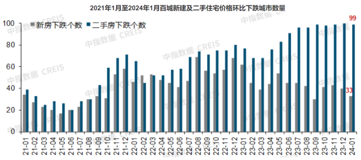 1月全国百城新房价格同环比齐涨,二手房价格环比连跌21个月