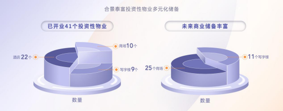 面对全新的市场环境,合景泰富不断协同发展多元业态,持续拓展业务边界。目前,集团在核心一二线城市累计已开业41个投资性物业,包括10个商场、9个写字楼和22个酒店。未来几年内,将有25个新商场、11个新写字楼陆续开业,构建强有力的商业协同矩阵。