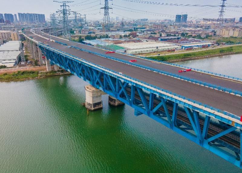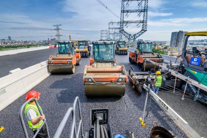 经过紧张施工,10月21日上午11时,随着最后一车上面层沥青混合料摊铺、碾压完成,位于项目公路铁路两用桥的最后一段沥青路面铺装完成。