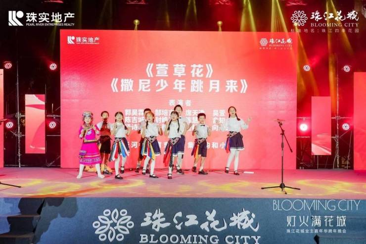 本次晚会还有珠江花城配建的体育东教育集团均和小学参演,学生们表演的《萱草花》、《撒尼少年跳月来》完美展示了少年的灵动与活力,动作整齐划一,明星范十足。