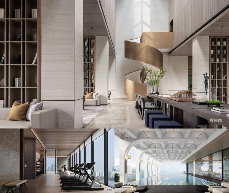 而一边优雅精致的阅读空间,读一本书,品一杯茶,低头是书香氤氲,抬头窗外的江景映入眼帘。多功能健身场地,则配置了跑步机以及其他有氧健身器材,不同的功能分区,可以尽情享受酣畅淋漓的运动,或是,在室内恒温泳池中肆意畅游。五大定制功能空间,全面满足金融家日常休闲、社交等需求。