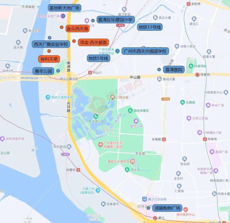 摊开地图,珠实·西关都荟紧邻南岸路,临近地铁5号线中山八站,步行约5分钟即可到达。