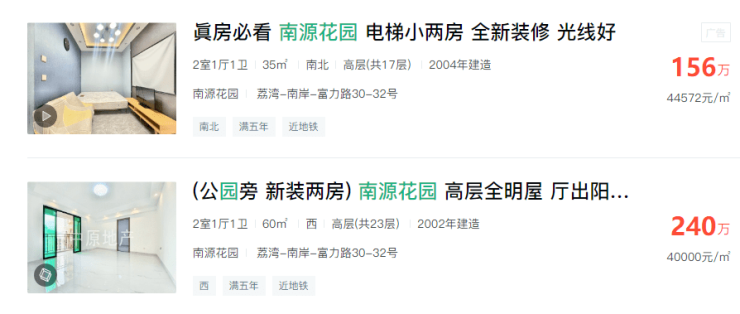 二手房方面,周边多为楼龄20年+的老旧小区,均价在4-5万元/㎡之间。