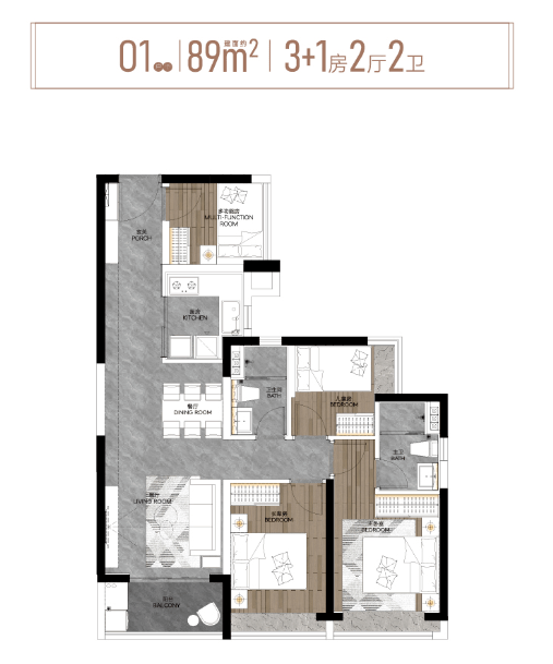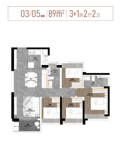 细细来看,两款建面约89m²3+1房均做到了带主套设计,实用率高。