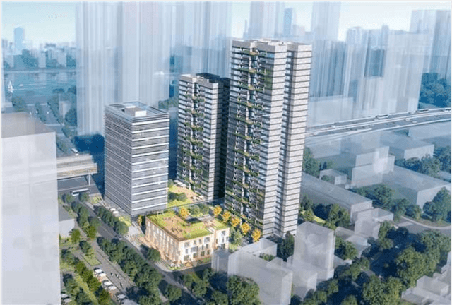 至于项目本身,体量不大,宗地面积仅15172.6㎡,计容建面53336㎡,规划了两栋32层的住宅楼、一栋办公楼、一所9班幼儿园。
