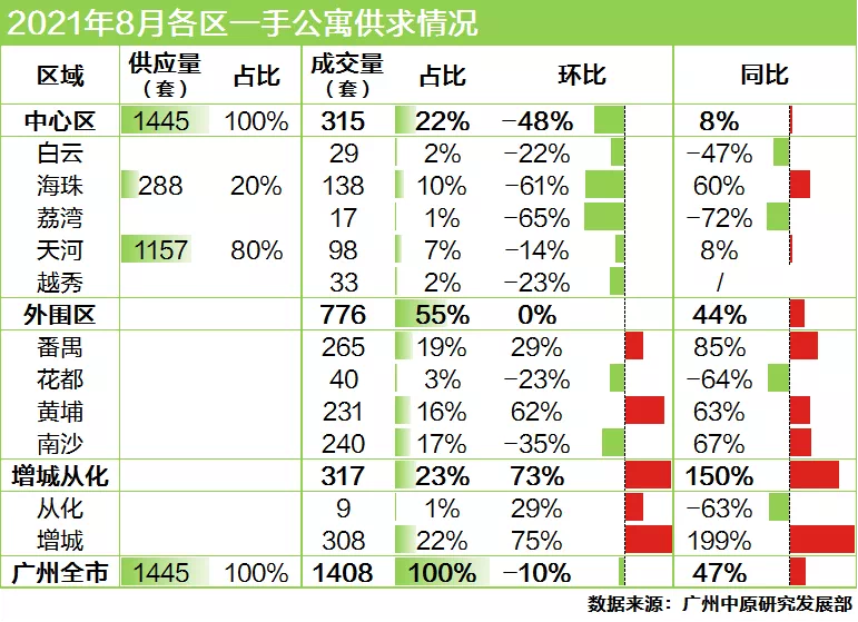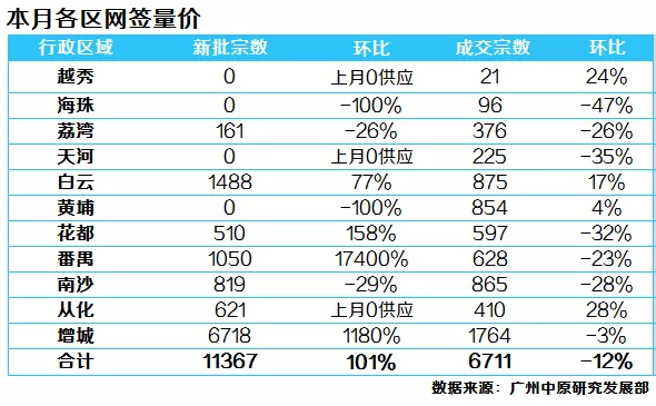 供求情况:大部分区域成交回落,白云黄埔“逆势”向上