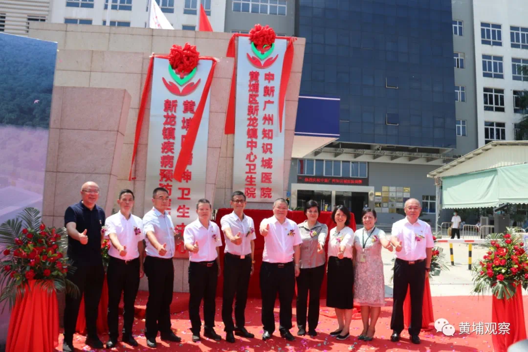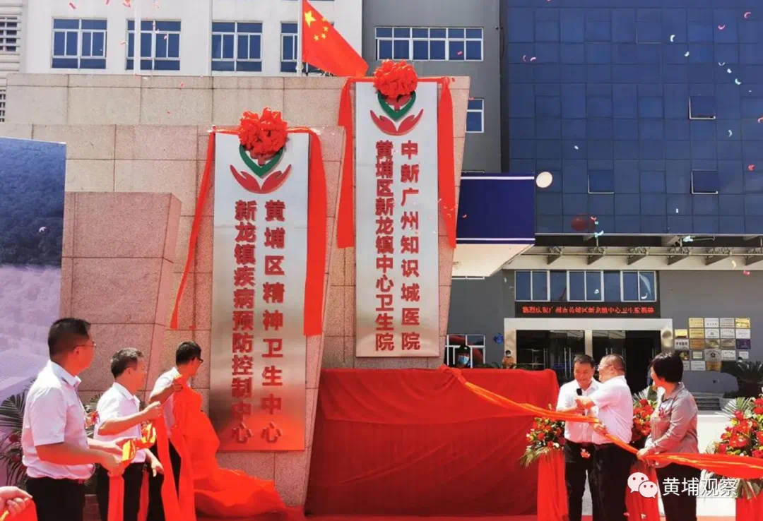 更名后的中新广州知识城医院,同时加挂三块牌子,分别为:新龙镇中心卫生院、黄埔区精神卫生中心、新龙镇疾病预防控制中心。