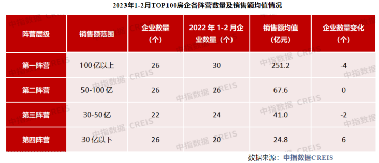 记者注意到,前两月房企各阵营发生了明显变化,其中第四阵营企业数量明显增加。