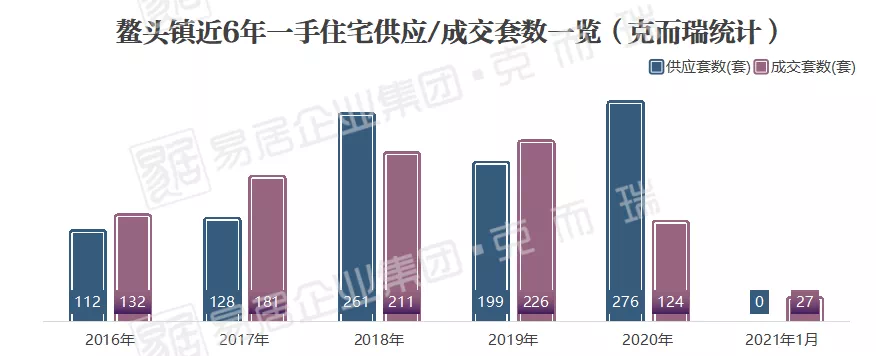 其中由于宅地供应缺乏,自2016年起,鳌头镇板块住宅口径供应也较少,住宅年供应量大约在200套上下;从成交上看,该板块住宅市场供求较为平衡。