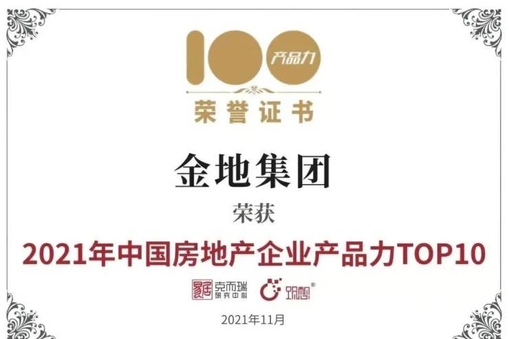 2021年,金地集团在克而瑞发布的《中国房地产企业产品力TOP100》榜荣获第7名,从“产品接受度”、“产品系成熟度”、“产品美誉度”、“获奖与认证”四个维度对企业产品力进行考核。作为业内较具影响力与公信力的榜单之一,金地已经连续4年稳居前十,而且多次凭借高端改善项目,获得“建筑工程鲁班奖”。