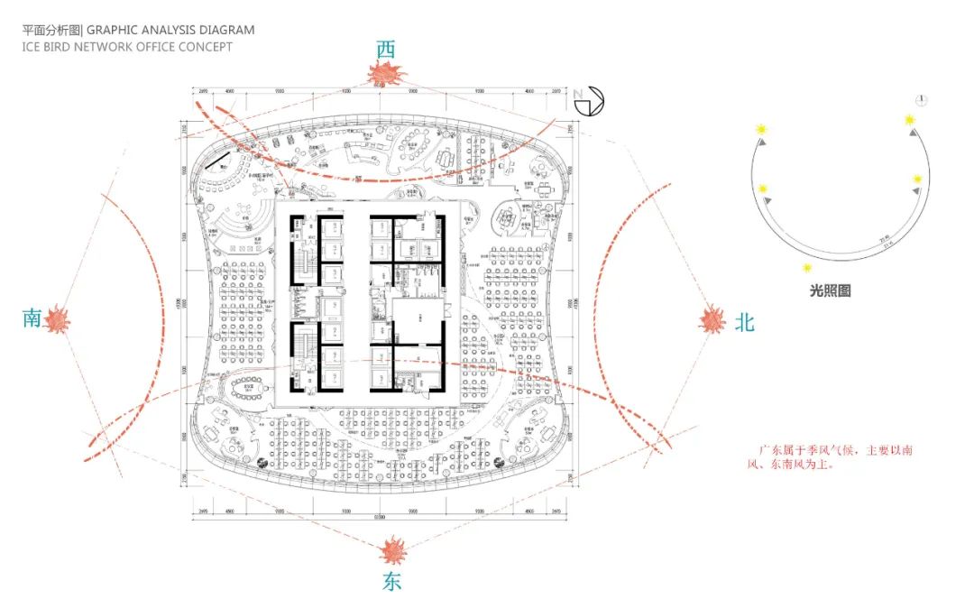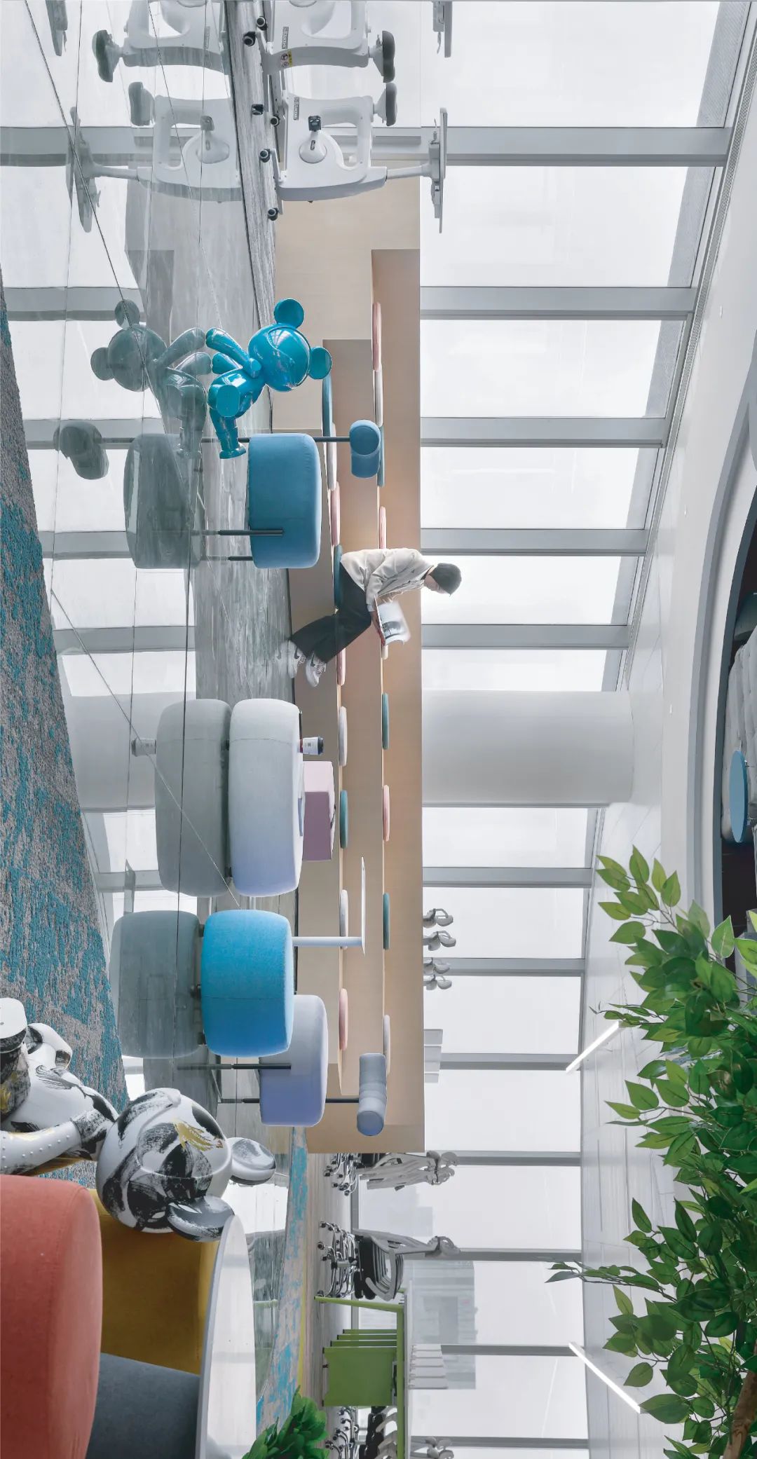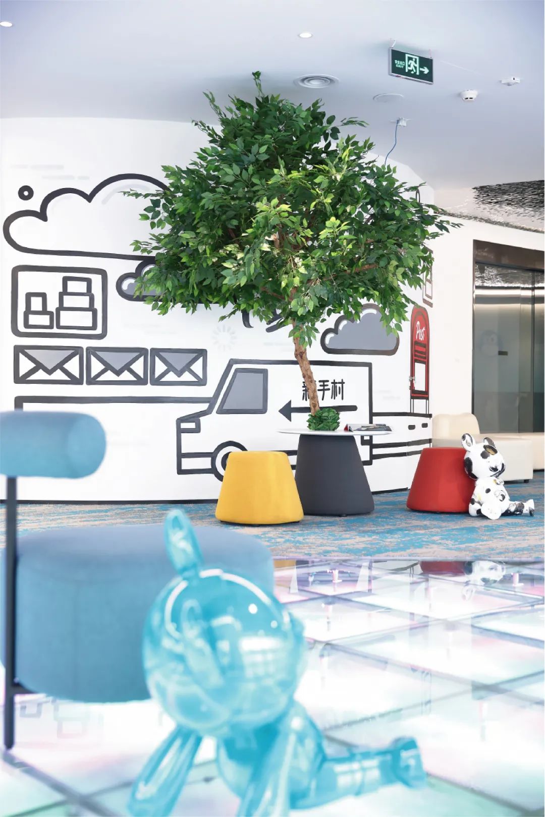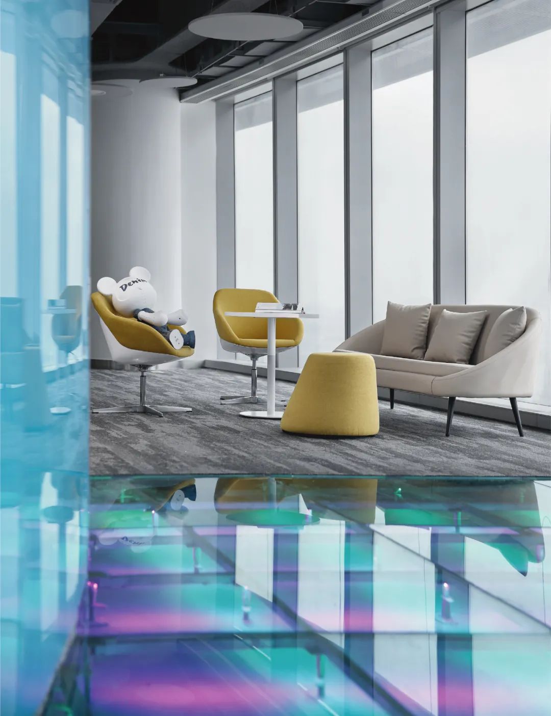 在空间细节上,室内色彩与元素运用源于冰鸟游戏的品牌logo,