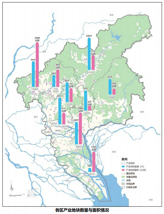《广州市产业地图》全面梳理全市3-5年内可供开发利用的产业用地,共564个地块、总面积超过90平方公里,覆盖全市12个区(含空港经济区),数量之多、范围之广,在全国均居前列。产业地块主导现代服务业、战略性新兴产业、先进制造业。