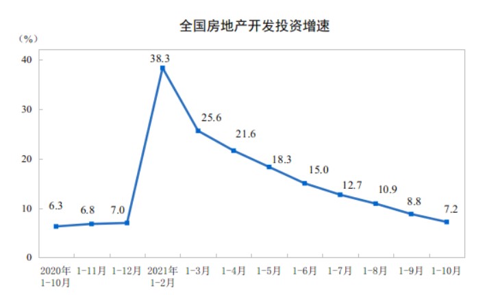 易居研究院智库中心研究总监严跃进指出,2021年1-10月,全国房地产开发投资额同比增速为7.2%。房地产开发投资从“过热”区间进入到“温和”区间,后续要防范步入“过冷”区间,即低于5%的水平。