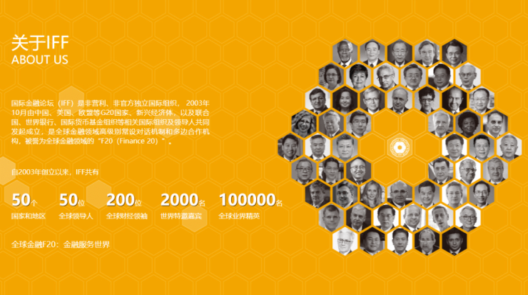 如果大家还不够了解,参照官方资料,国际金融论坛(IFF)由中国、美国、欧盟等相关国际组织和领导人共同发起成立,历经20年发展,被誉为全球金融领域的「F20」。