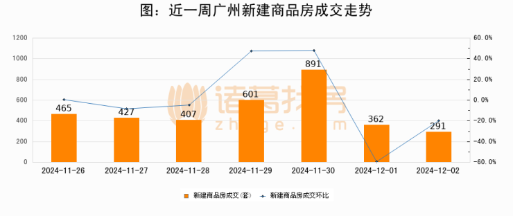 【广州成交日报】12月02日新房成交291套;涨价房源2套