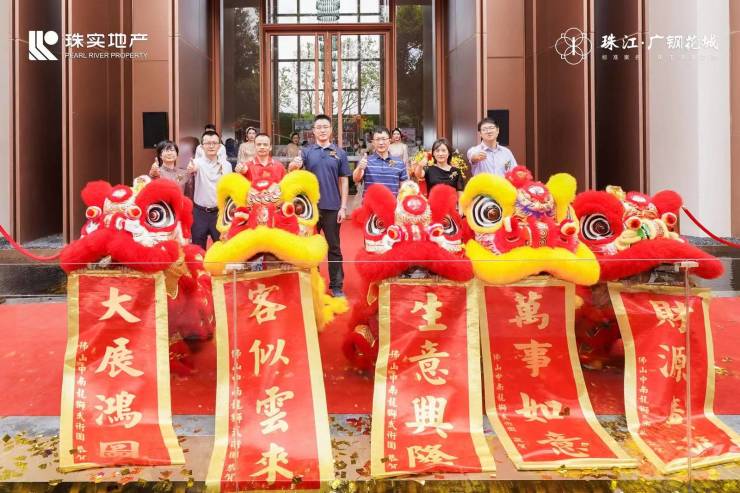 紧接着,各位领导登台,进行珠江•广钢花城的剪彩仪式,礼花漫天而至,现场一片欢腾。在热烈的掌声中,应邀领导共同为瑞狮“点睛”,寓意项目吉祥如意、顺利大卖;伴随着欢庆的锣鼓声、精彩绝伦的舞狮表演,珠江•广钢花城营销中心正式对外开放!