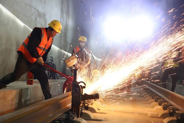 1月6日14时许,在大源站铺轨施工现场,随着最后一组500米长钢轨精准落位,广佛东环城际铁路全线铺轨顺利完成,标志着项目实现“轨通”,为全线开通运营奠定坚实基础。未来,广佛东环将与广州地铁首环十一号线在琶洲站实现换乘,粤港澳大湾区“地铁环”与“城际环”在此相切,广佛城际与广州地铁均可刷卡进站,“一票”畅行粤港澳大湾区。