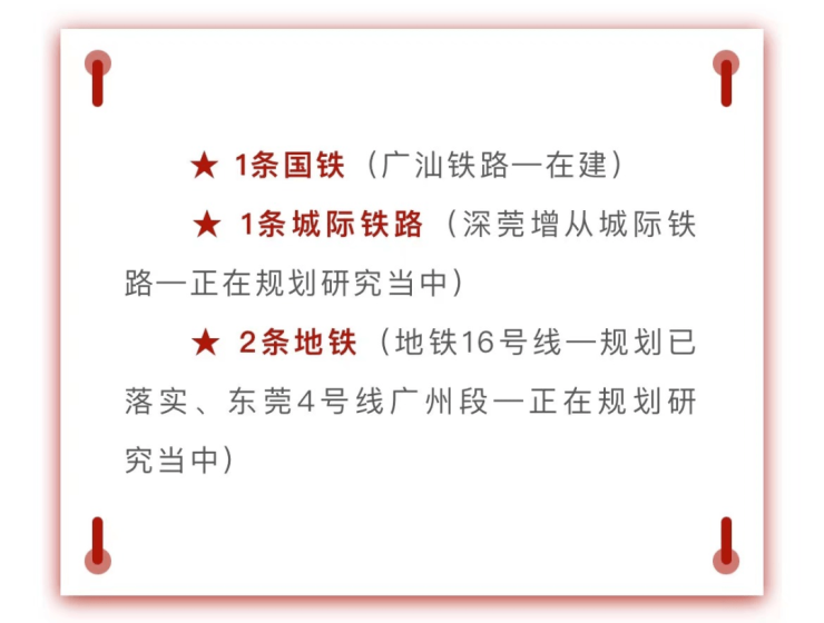 目前,广汕铁路在建,地铁16号线还在规划中,而深莞增从城际铁路、东莞4号线广州段仍在规划研究中。