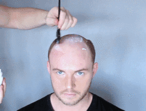 首先将特殊的粘合剂涂在谢顶部位